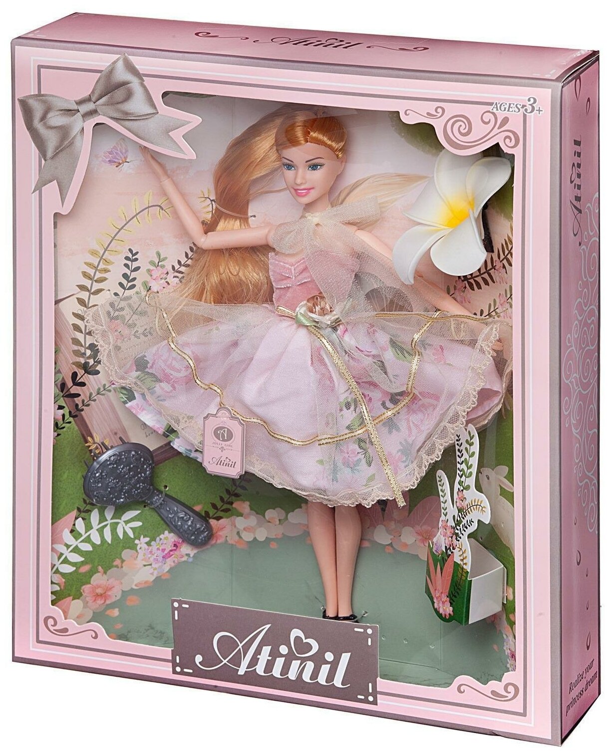 Кукла Atinil. Весенняя свежесть в платье (розовый верх и двухслойная юбка) с расческой и цветком лотоса, 28см - Junfa Toys [WJ-21537/модель3] информация: