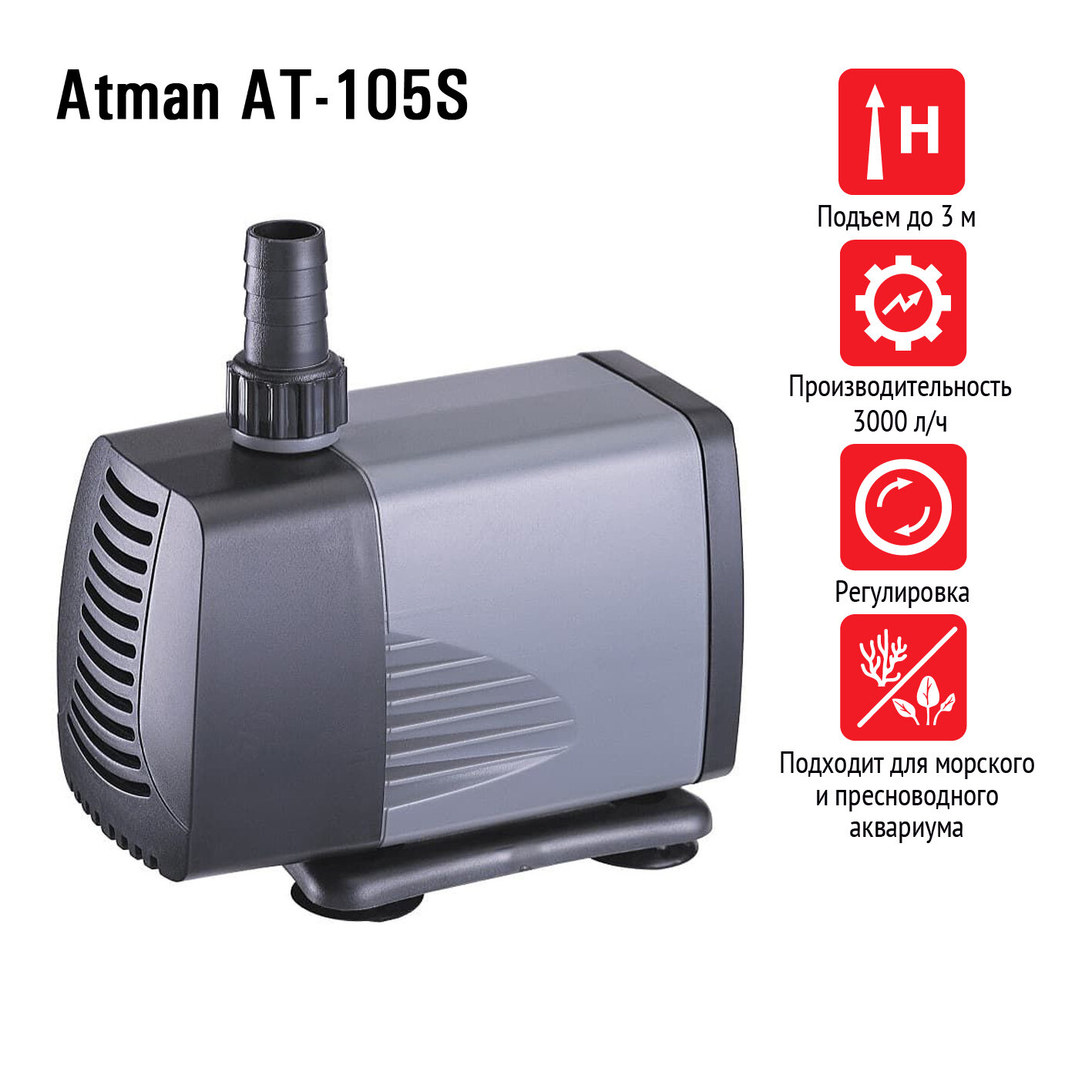 Помпа подъемная Atman AT-105S, 3000 л/ч, 37W, подъем до 3 м информация: