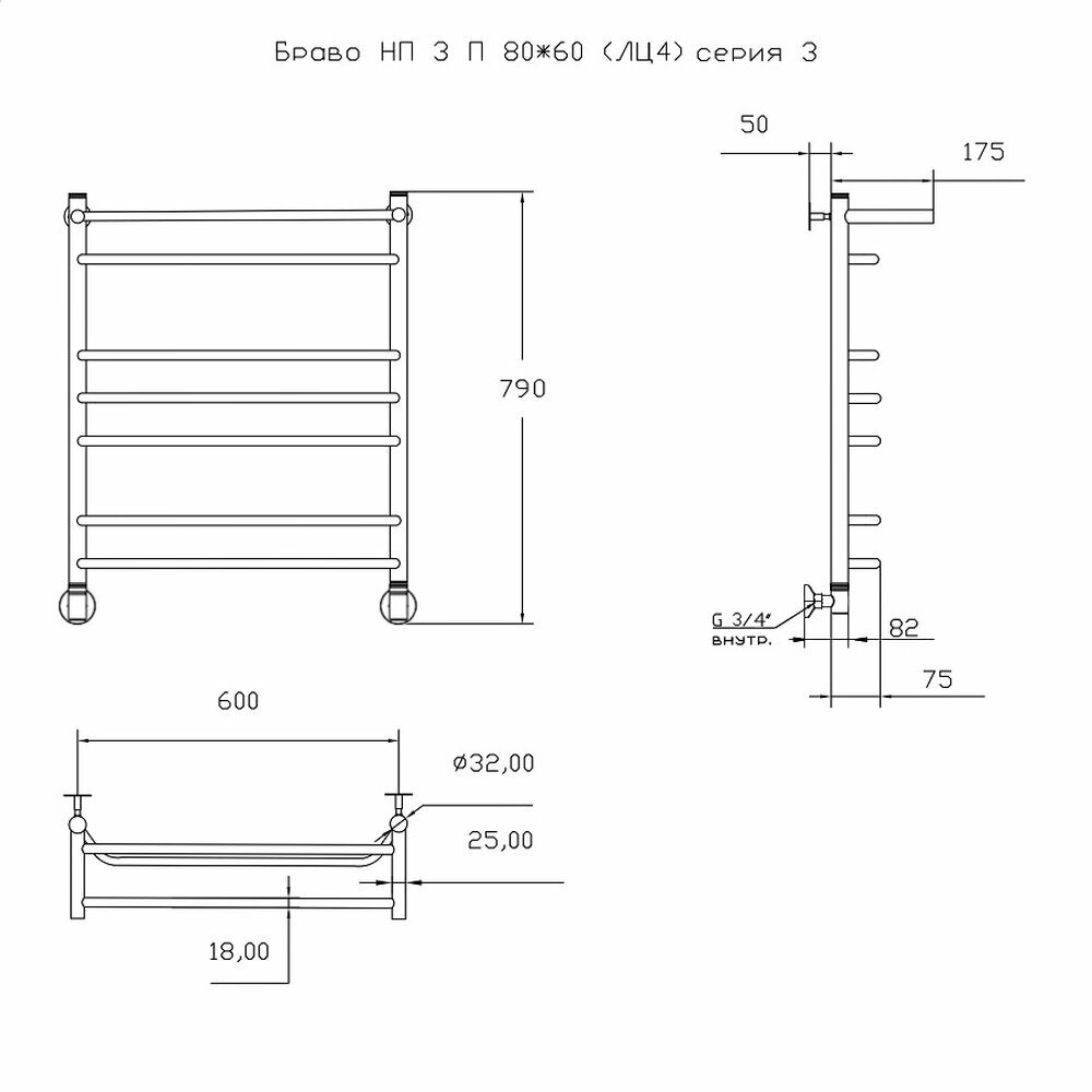 Полотенцесушитель Браво НП 3 П 80*60 (ЛЦ4) информация: