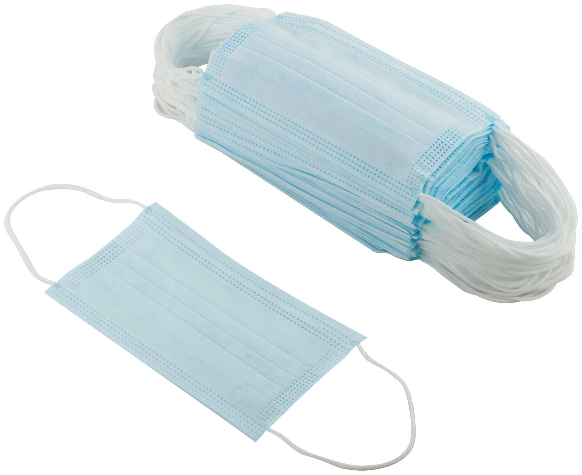 Маски медицинские трехслойные на резинке с фиксатором, голубые, 50 штук, SENSE