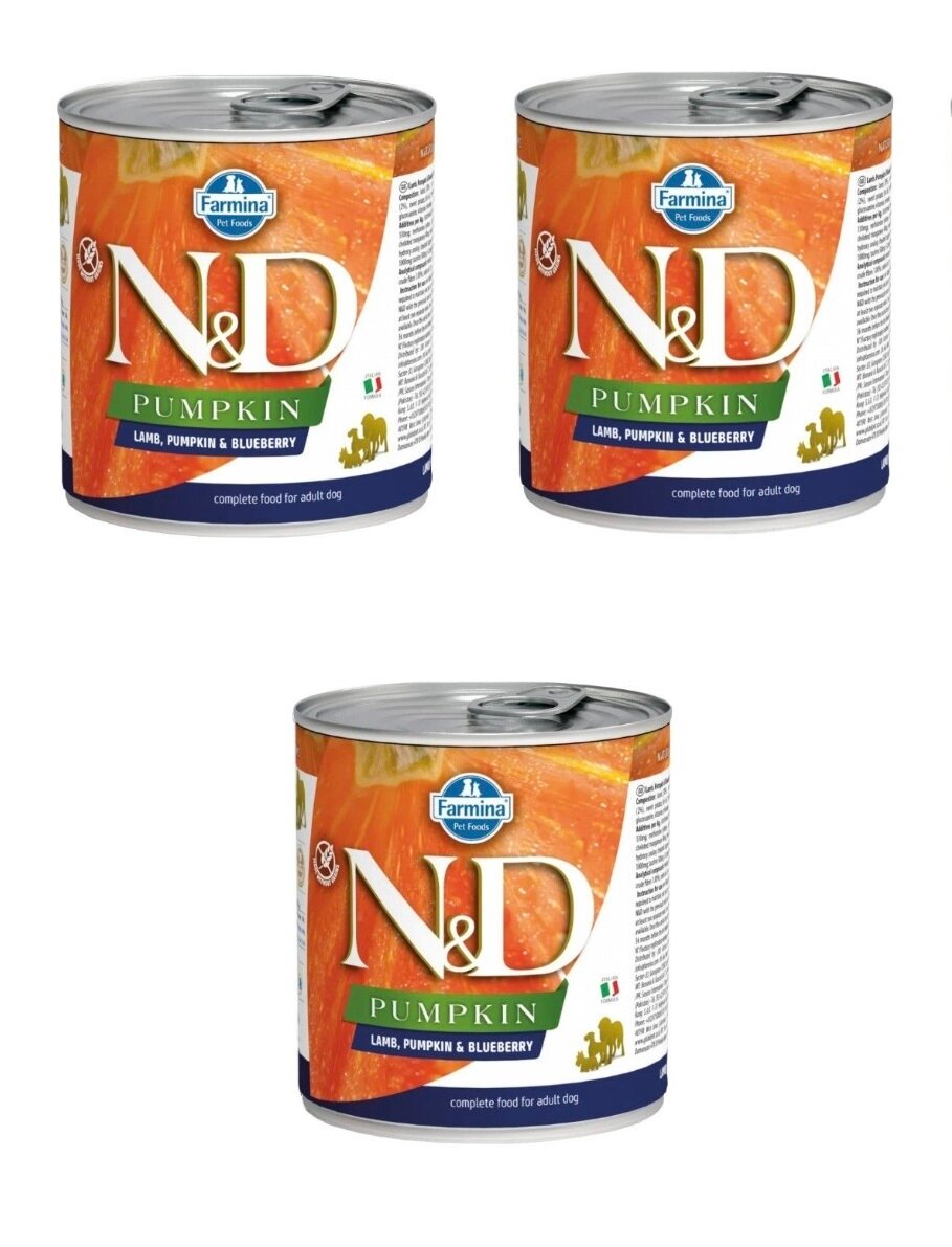 10 цен на FARMINA Консервы для собак PUMPKIN ягнёнок с тыквой и черникой Н Д 10910 | Lamb, Pumpkin Blueberry Adult , 0,285 кг (3 шт)