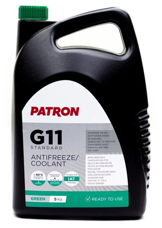 Антифриз 5Кг (4.4Л) - Зеленый Patron Green G11, Tl 774-C, Sae J1034, N600690, Ms-7170, Man 324 Nf, M PATRON арт. PCF4005