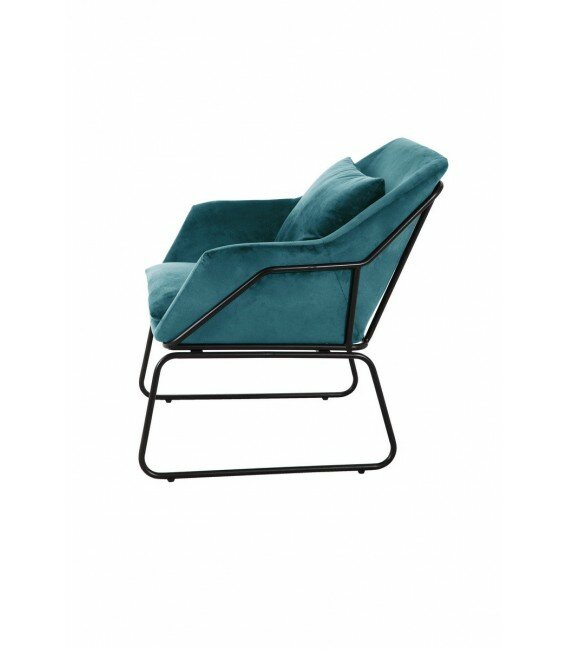 Кресло с подушкой мягкое велюр ALEX темно-бирюзовое, для отдыха, на черных металлических ножках, офисное, интерьерное для дома в гостиную и на кухню