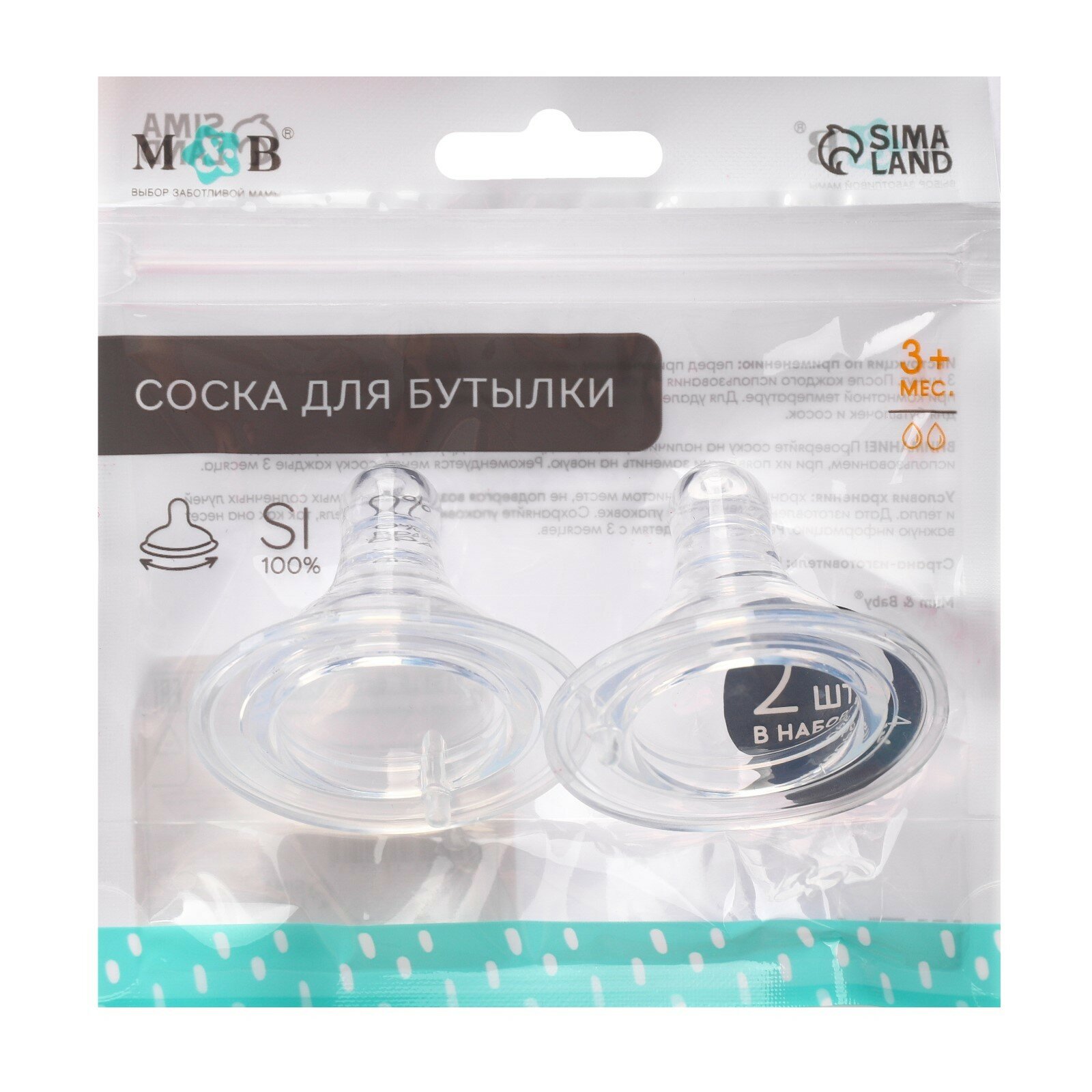 Mum&Baby Набор силиконовых сосок на бутылочку, 2 шт., антиколик., от 3 мес., широкое горло, средний поток