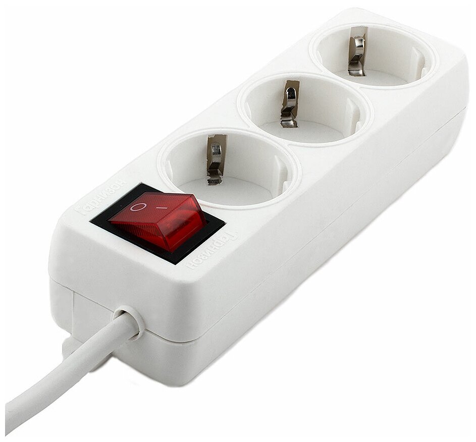 Удлинитель Гарнизон 3 евророзетки с выключателем и заземлением, длина 2м. ELB-G3-W-2
