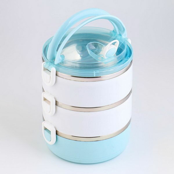 10 цен на Ланч-бокс "Милави", 1.5 л, 3 уровня, ёмкость 500 мл, голубой