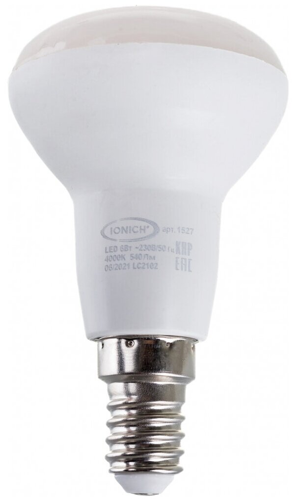 Отзывы на IONICH R50 E14 6W(540lm) 4000К 4K 50x83 матов./пластик/алюм ILED-SMD2835-R50 1527 (арт. 773239)