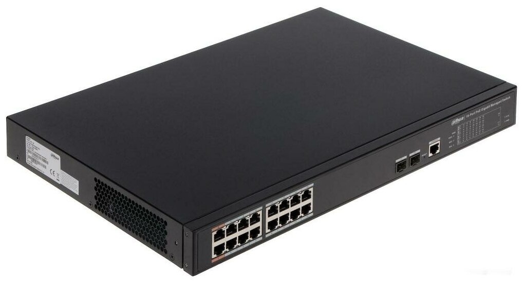 Dahua 16-портовый гигабитный управляемый коммутатор с PoE уровень L2 Порты: 16 RJ45 10/100/1000Мбит/с (PoE/PoE+/Hi-PoE) 2 SFP 100/1000Мбит/с (uplink); мощность PoE: порты 12 до 60Вт порты 316 до 30Вт суммарно до 240Вт; питание: 100240В(AC); грозозащита: д