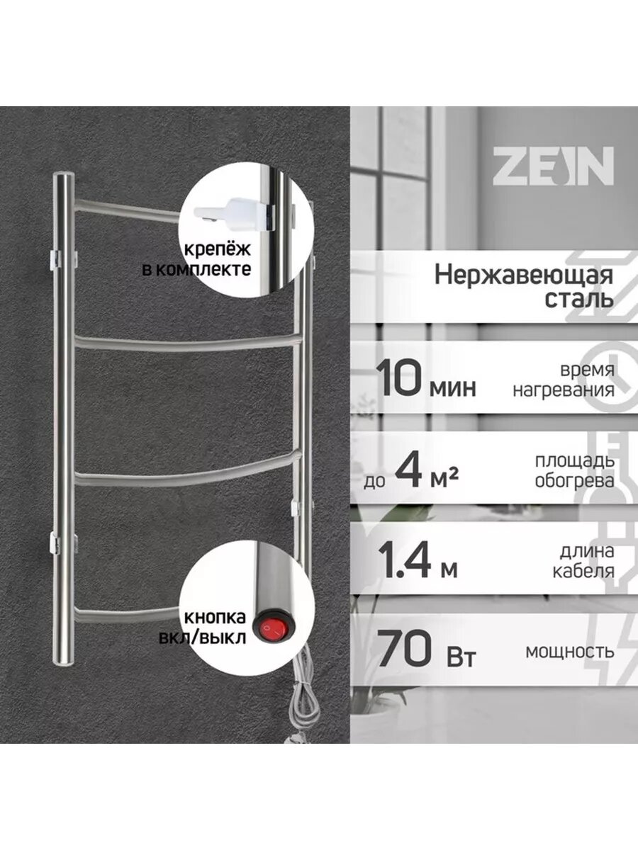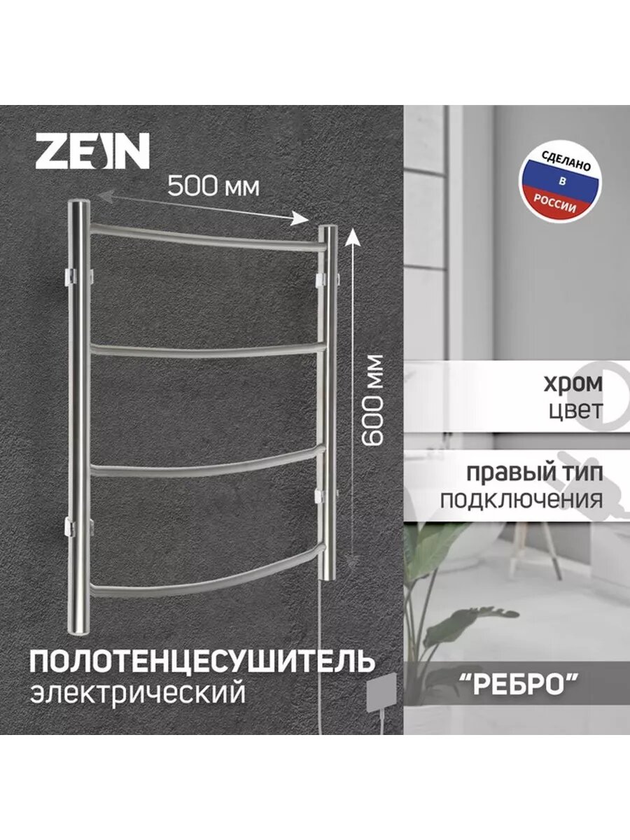 10 цен на Полотенцесушитель электрический ZEIN "Ребро", 500х600 мм, 4 перекладины