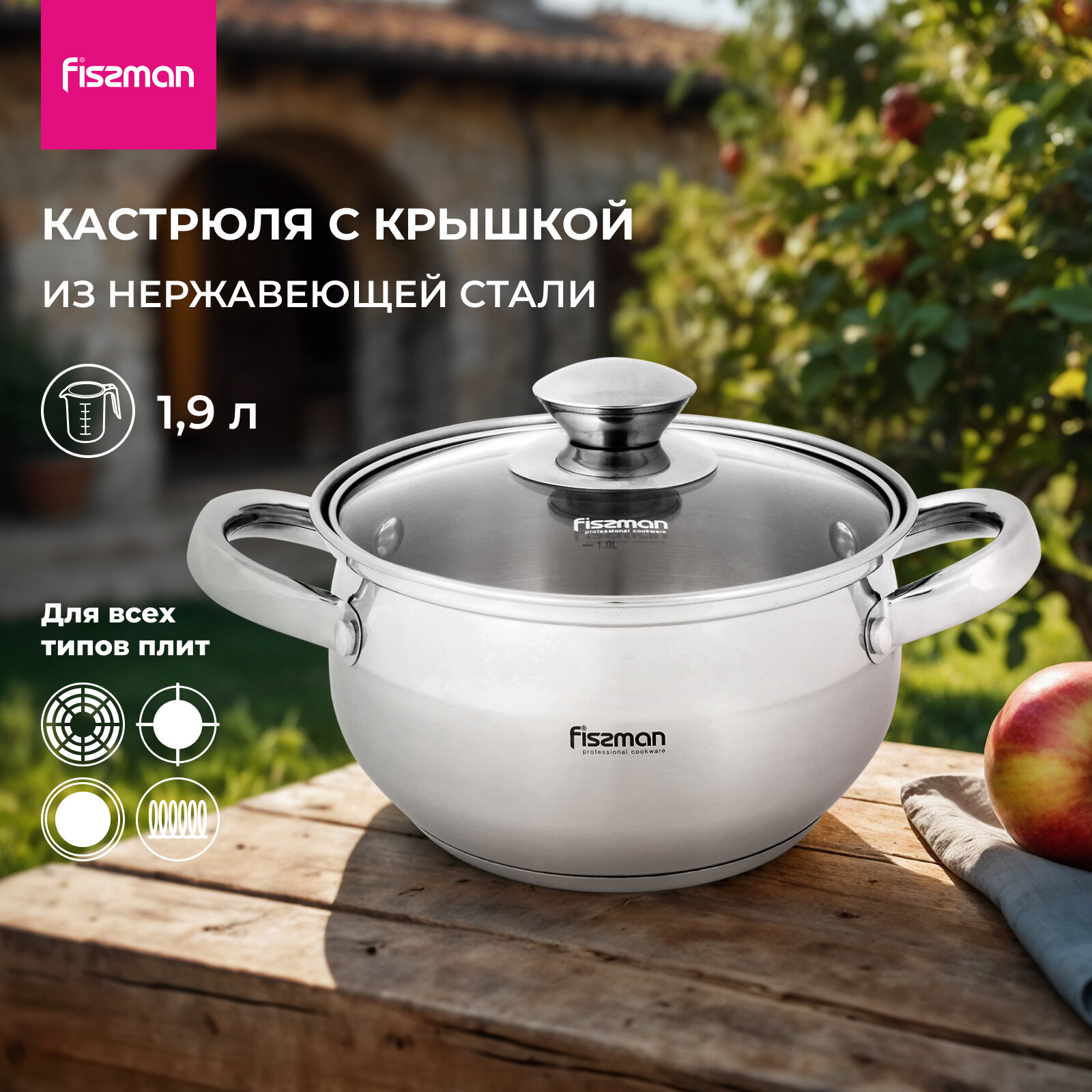 Отзывы на Кастрюля Fissman PRIME 16x9,5 см / 1,9 л со стеклянной крышкой (нерж.сталь) (5511)