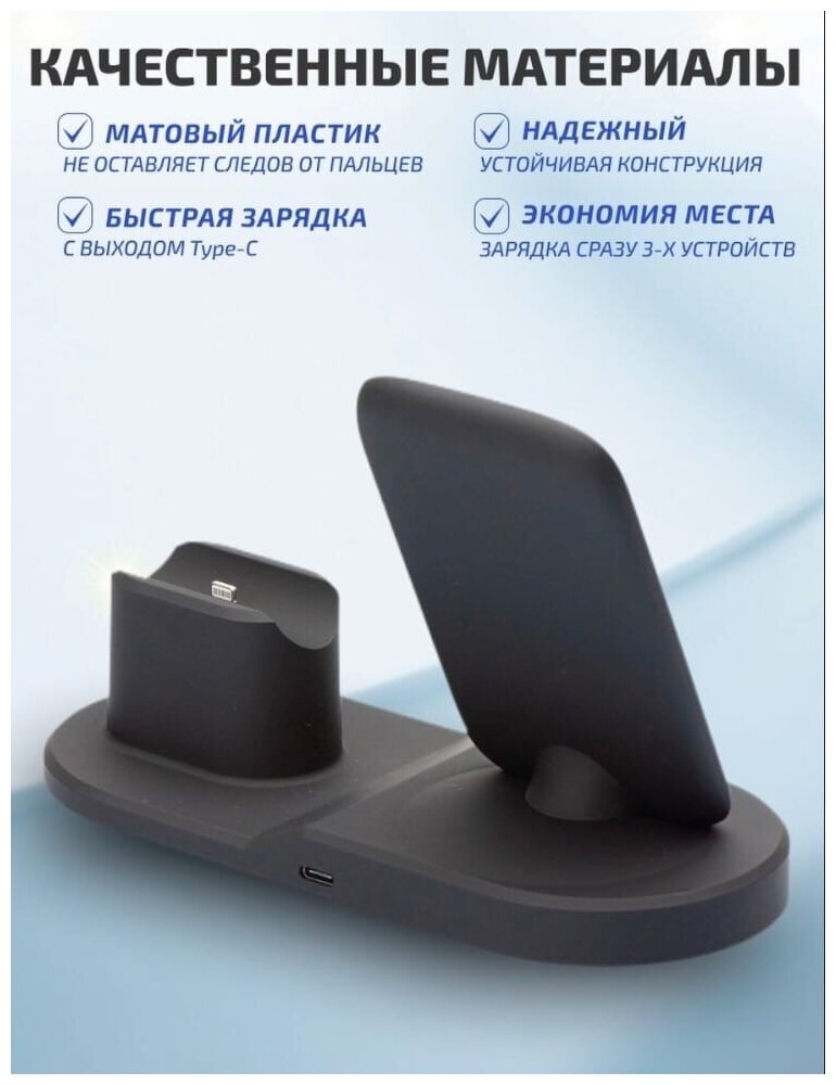 Отзывы на Беспроводная зарядная станция 3 в 1 с функцией быстрой зарядки черная / Беспроводная док-станция / Зарядка для iPhone, Apple Watch, AirPods