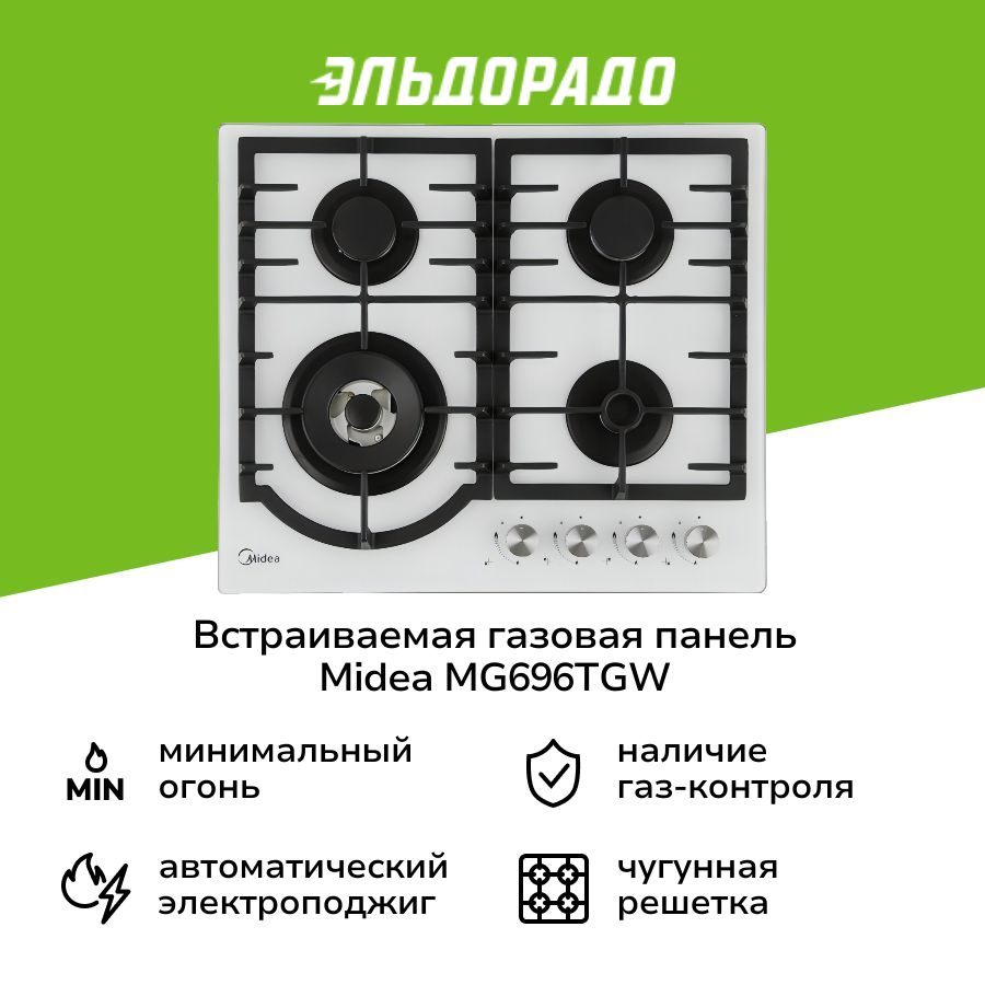 Встраиваемая газовая панель независимая Midea MG696TGW информация: