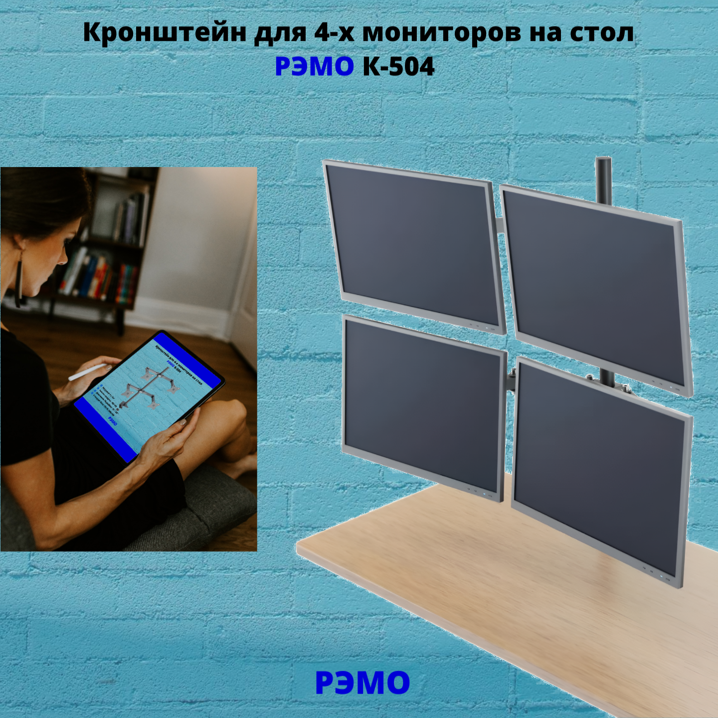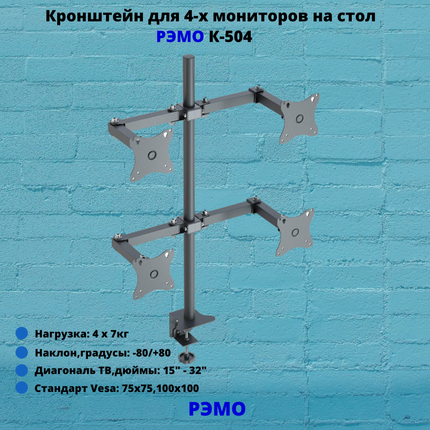 Кронштейн для четырех мониторов на стол наклонно-поворотный с диагональю от 15"до 32" Рэмо К-504,чёрный