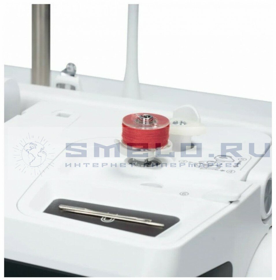 | Дополнительные функции | автоматическая остановка иглы в верхнем положении, автоматический обрезатель нити, автоматическое закрепление строчки, верхний транспортер ткани, кнопка реверса, отключение механизма подачи ткани, переключатель положения иглы (верх/низ), регулировка давления лапки на ткань, шитье без педали, электронный стабилизатор усилия прокола |
