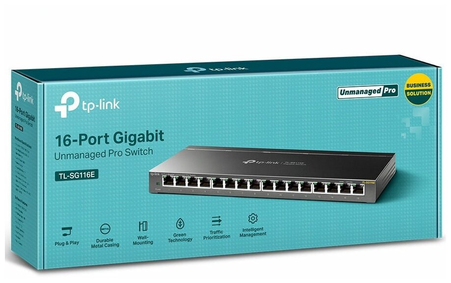 Коммутатор Tp-Link TL-SL1218MP, неуправляемый, настольный, цвет черный, 16 портов 30 724 ₽