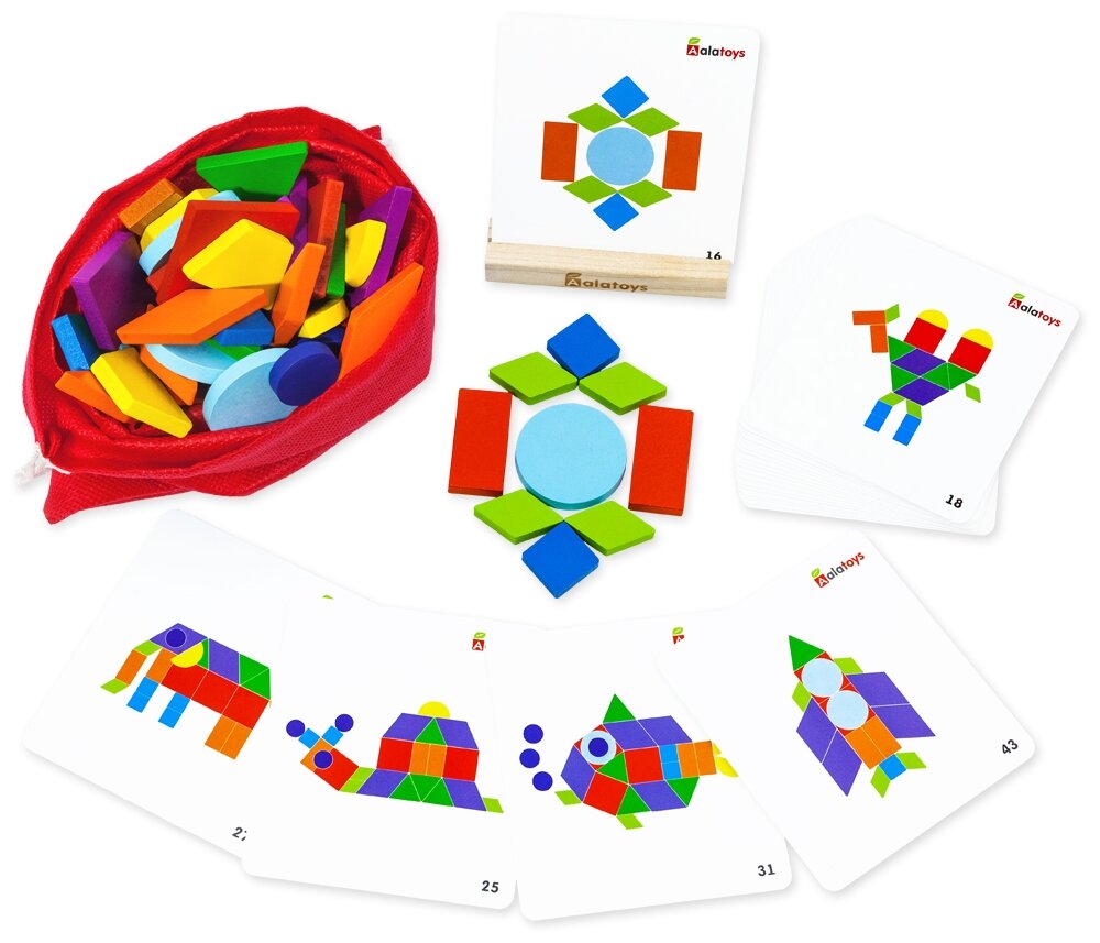 Alatoys Мозаика «Фигурки» 44 фигурки, 48 заданий, тканевый мешочек