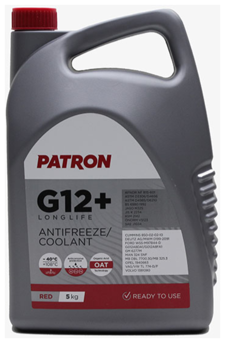Антифриз 5кг брутто (4.4л) красный готовый, PATRON RED G12+, TL 774-D/F, G012A8DA1, G012A8FA1, WSS-M97B44-D, 6277M, MAN 324 SNF, MB 325.3, 1940663, 1381080 PCF2005