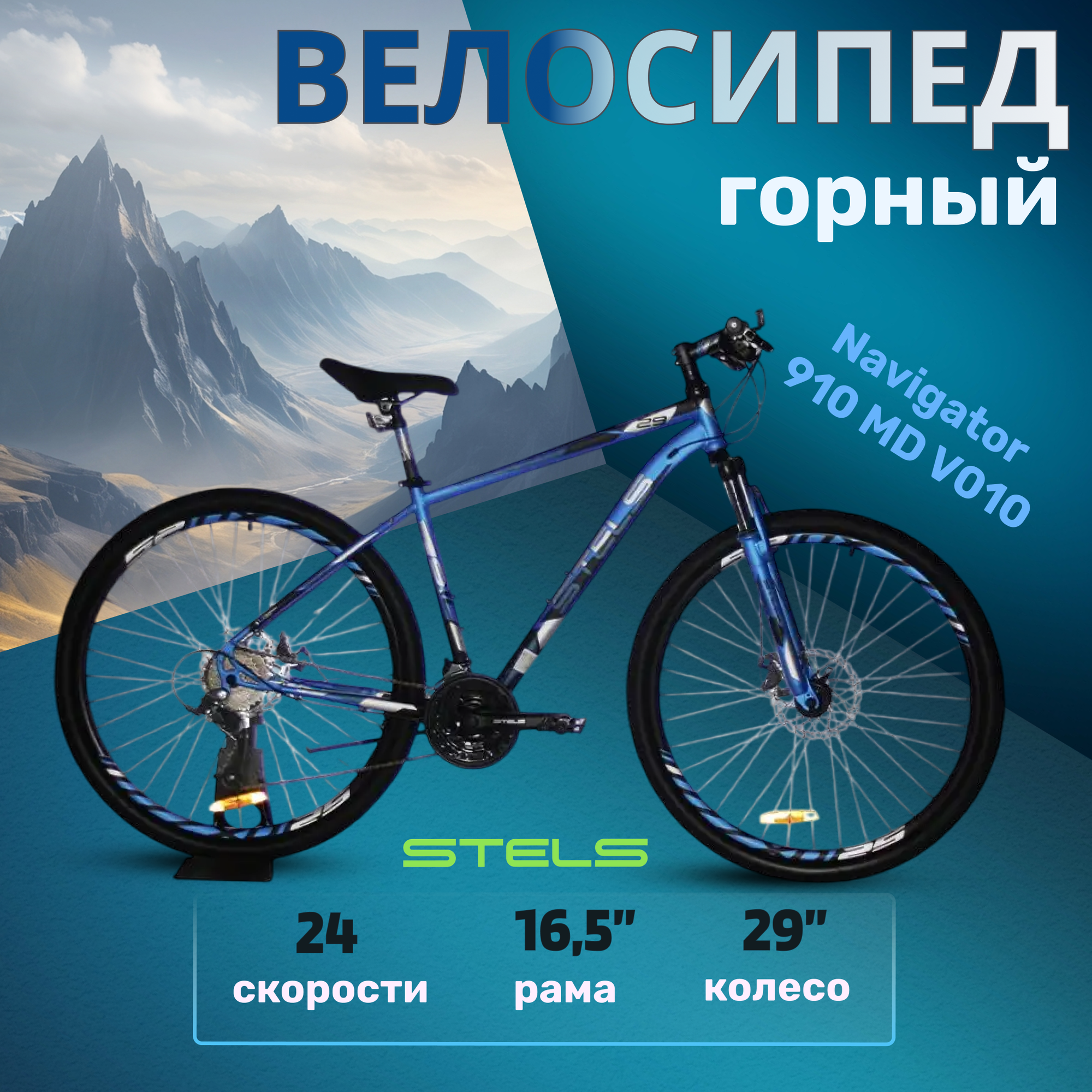 Велосипед Stels Navigator 910 MD V010 Синий/Чёрный 29' (LU091696), 16,5' информация: