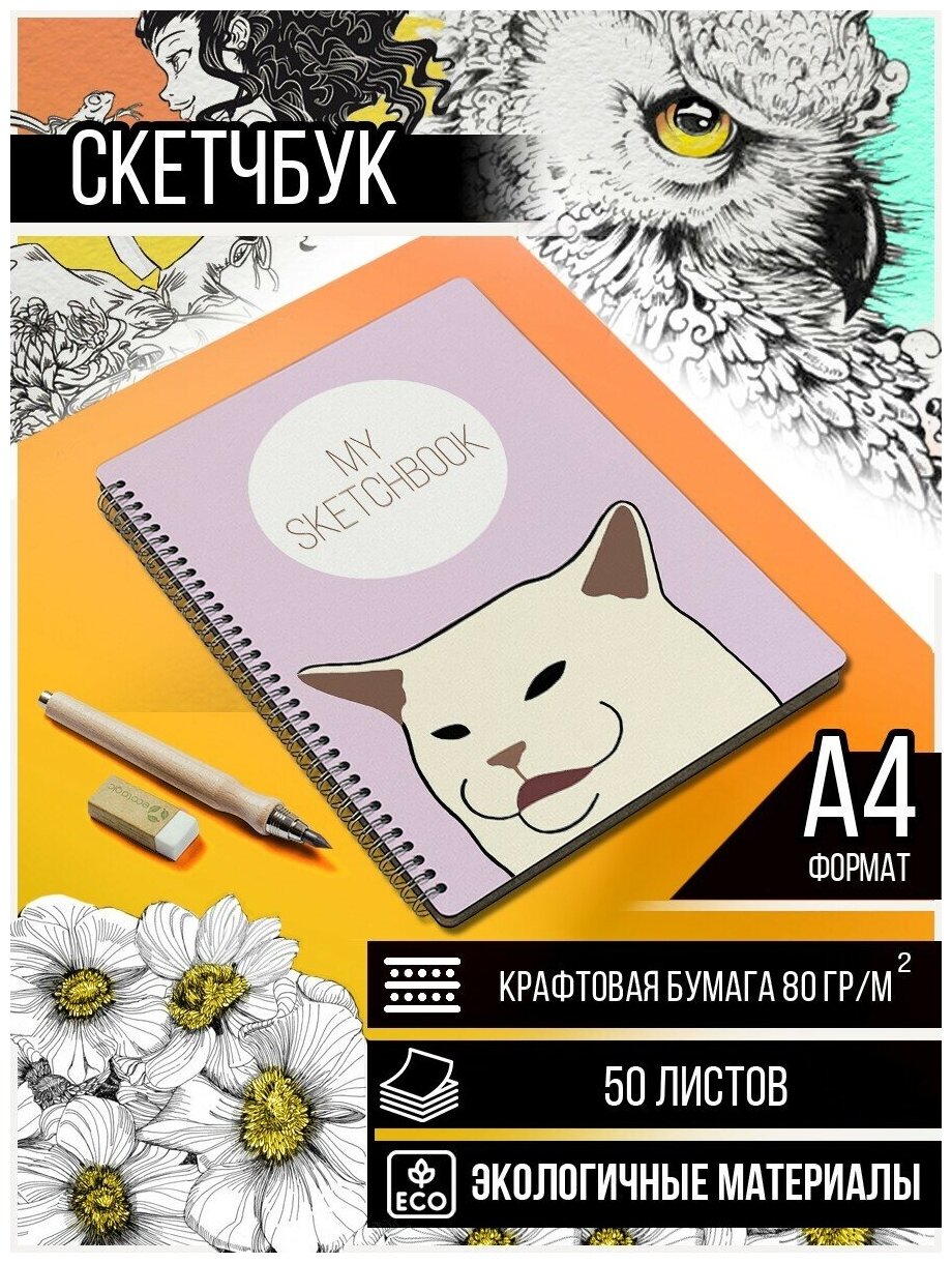 Скетчбук А4 крафт 50 листов Блокнот для рисования мемы коты salad cat недовольный кот - 1017 информация: