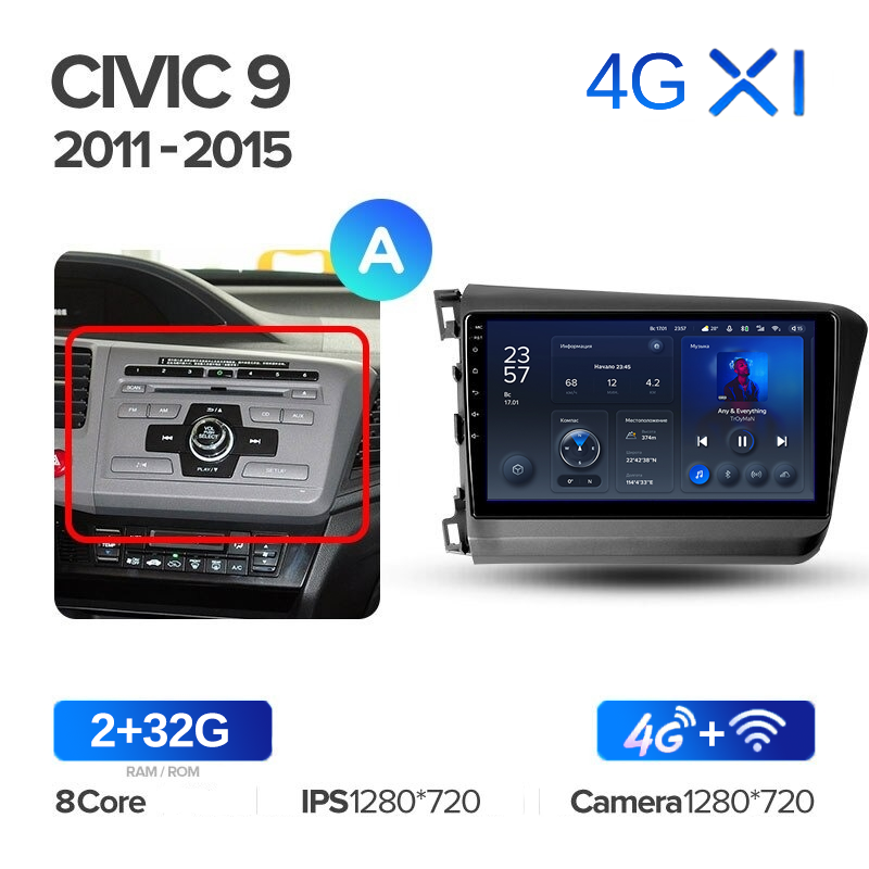 Штатная магнитола Teyes X1 Wi-Fi + 4G Honda Civic 9 FB FK FD 2011-2015 информация: