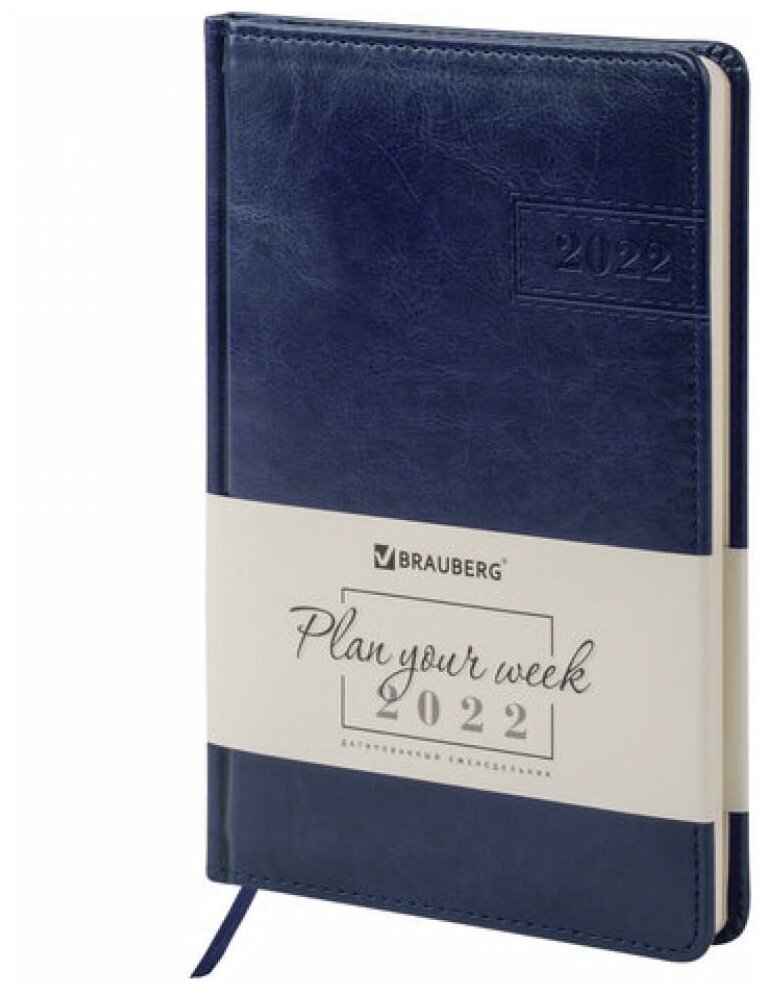 Brauberg Еженедельник датированный 2022 А5 145х215мм Imperial, под кожу, синий, 112872 . информация:
