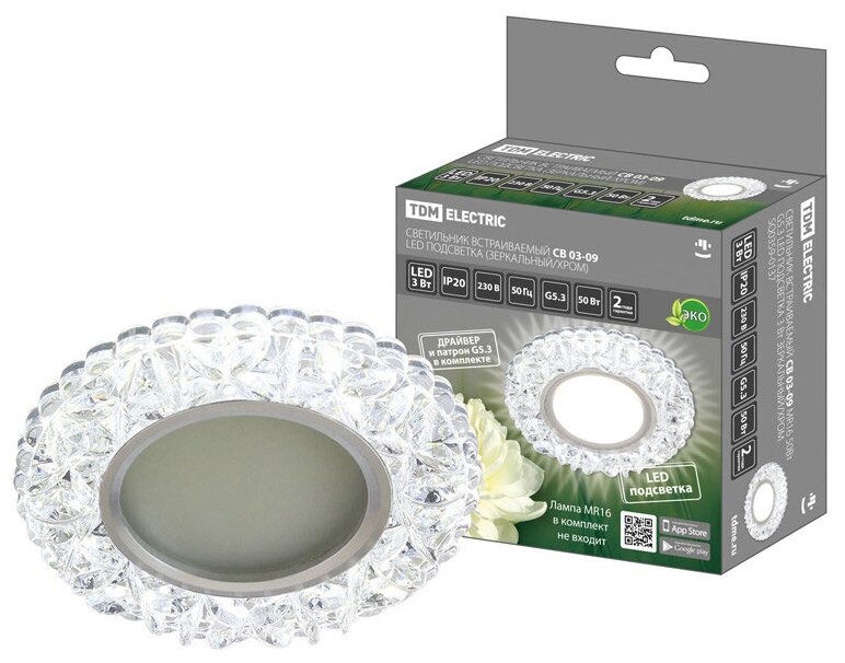 Отзывы на Светильник встраиваемый СВ 03-09 MR16 50Вт G5.3 LED подсветка 3 Вт зеркальный/хром TDM Артикул SQ0359-0137