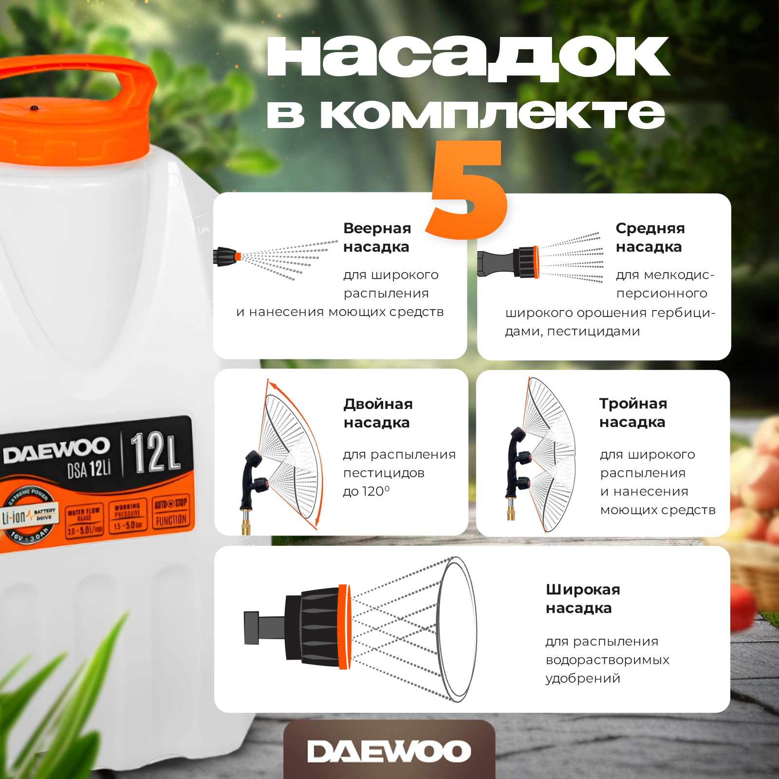 Опрыскиватель аккумуляторный DAEWOO DSA 12Li с 2 АКБ и ЗУ (12В, 10Ач, 12л) информация: