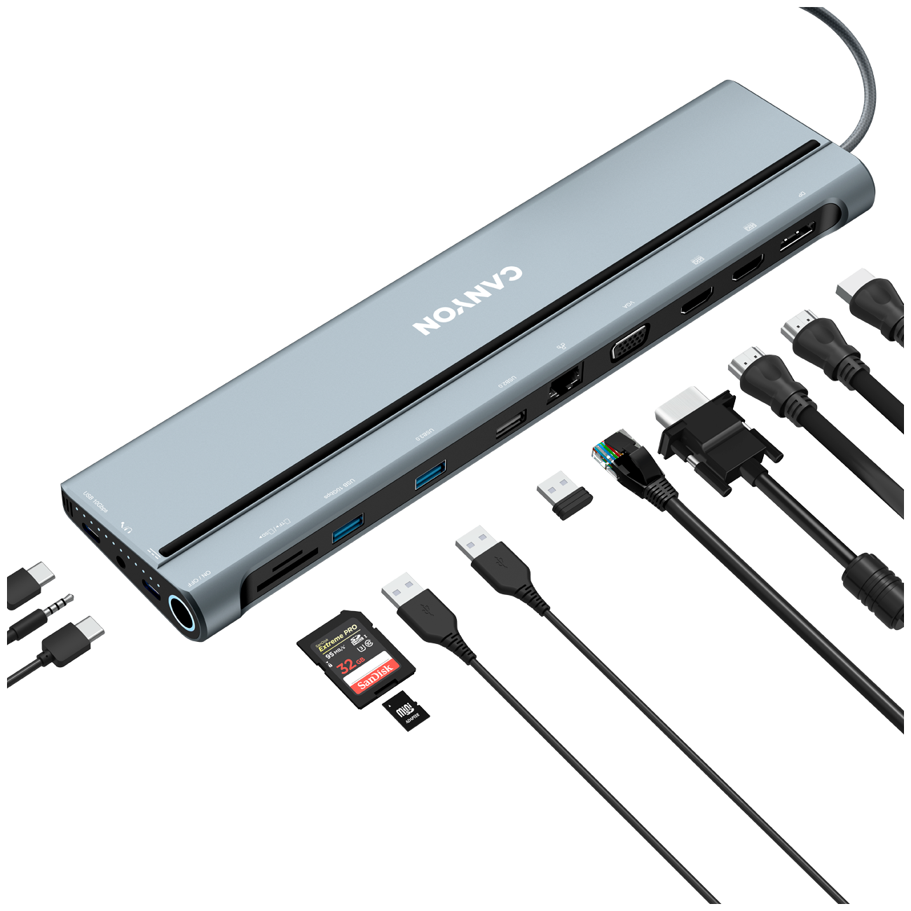 USB Hub Canyon Type-C 13-в-1 DS-12 металл 13 портов одновременное подключение 2х мониторов быстрая зарядка PD100W Совместимость с ОС Windows / ma