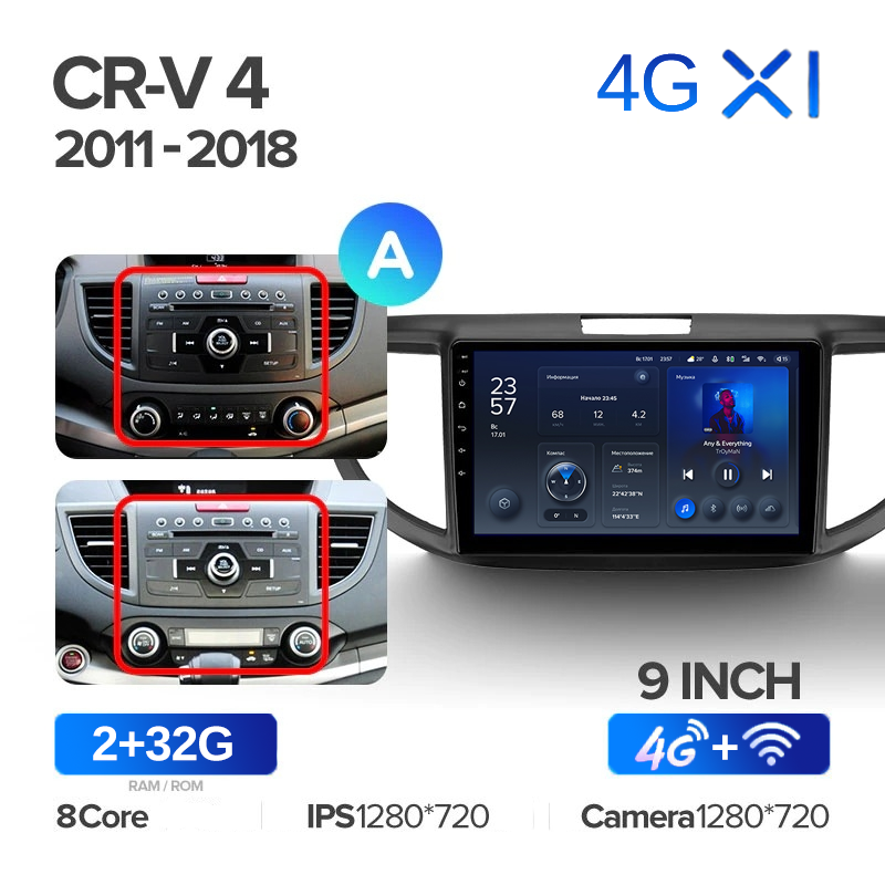 Штатная магнитола Teyes X1 Wi-Fi + 4G Honda CR-V 4 RM RE 2011-2018 (9 / 10 дюймов) информация: