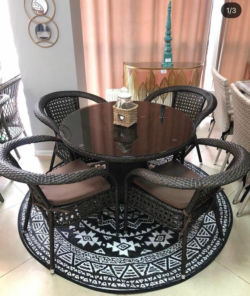 | Комплектация | круглый стол со стеклом, 4 кресла |