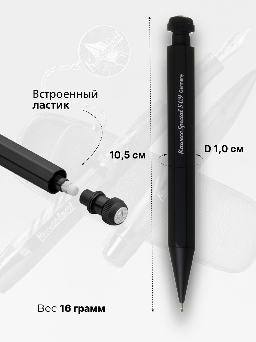 Карандаш автоматический Kaweco "Special S" с ластиком, корпус: чёрный, 0,9 мм
