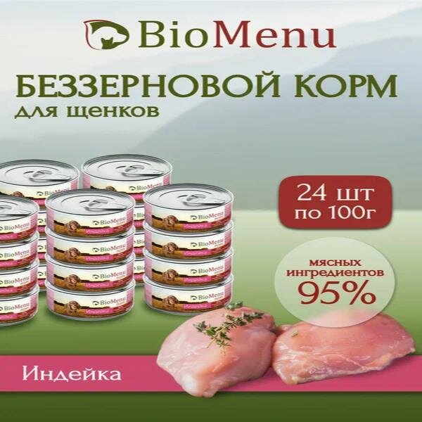 BioMenu Консервы для щенков Индейка (7394029798) 0,1 кг 19011 (26 шт) 2 555 ₽