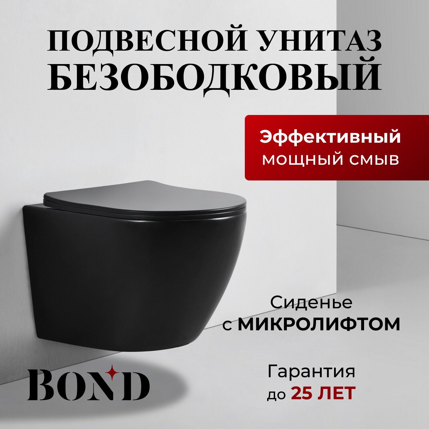 10 цен на Унитаз подвесной безободковый чёрный BOND F01-108 с сиденьем с микролифтом