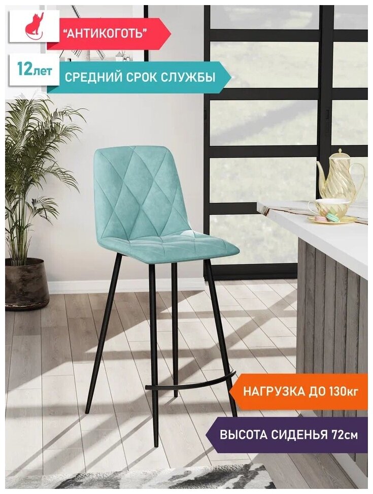 Отзывы на Барный стул Ричи, DecoLine, велюр тиффани, каркас чёрный, антикоготь, 1 шт.