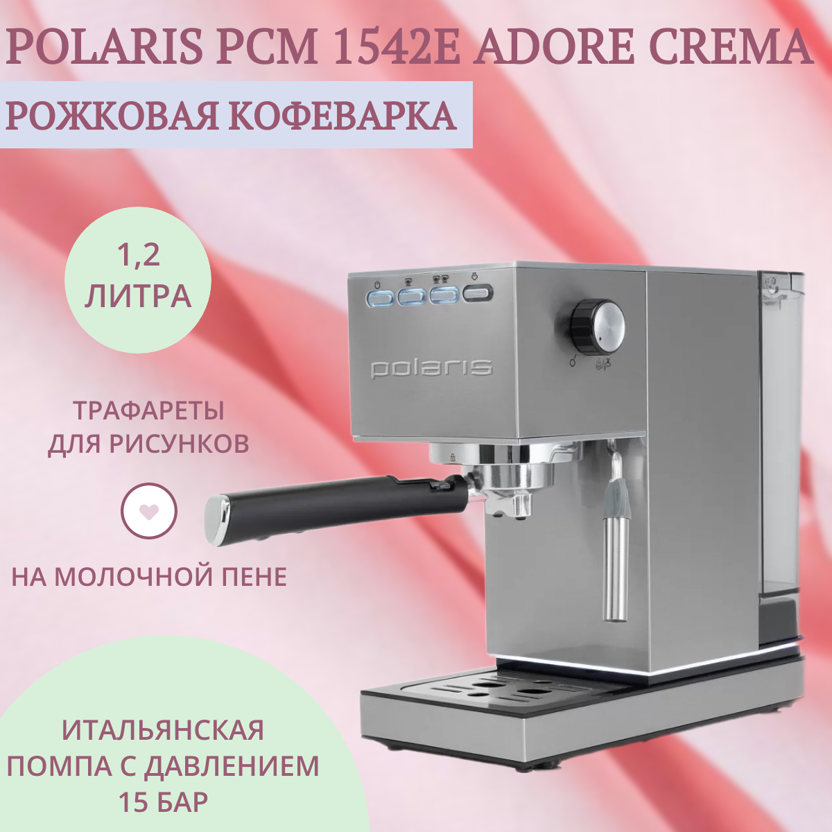 Кофеварка Polaris PCM 1542E Adore Crema, рожковая, нержавеющая сталь информация: