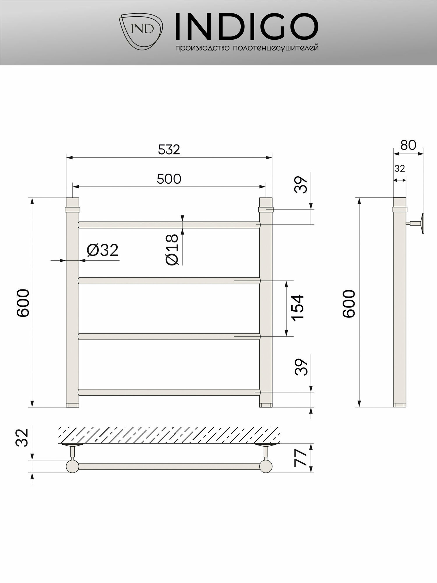 Полотенцесушитель водяной INDIGO Line 60/50 информация: