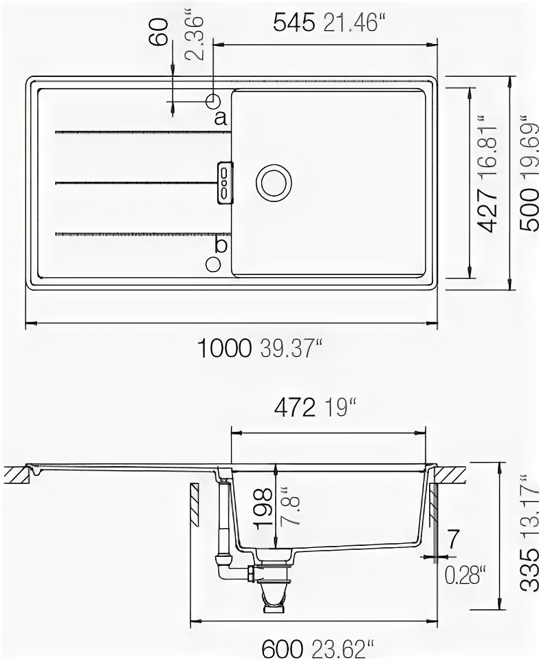 Мойка FABIA 62322L сатин врезная 78х48 см левая + большой сифон с переливом