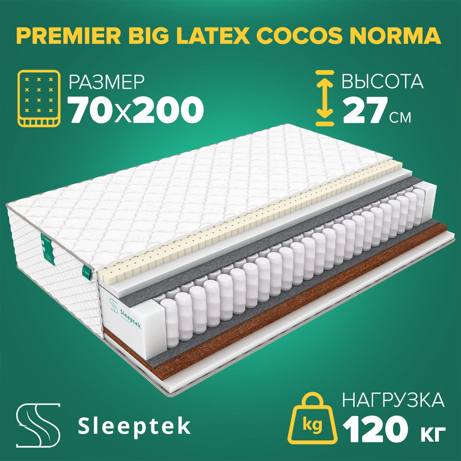Матрас Sleeptek PremierBIG Latex Cocos Norma 70х200 информация: