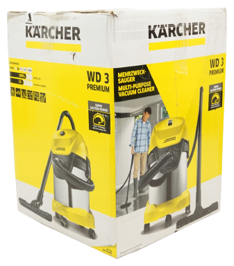 Профессиональный пылесос KARCHER WD 3 Premium, 1000 Вт, желтый/серый
