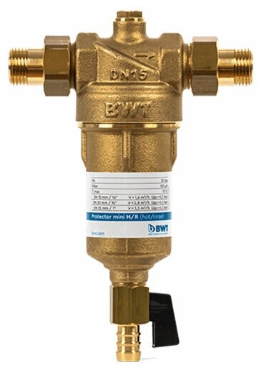 Предфильтр BWT Protector Mini для горячей воды прямая промывка 3/4 НР(ш) х 3/4 НР(ш)