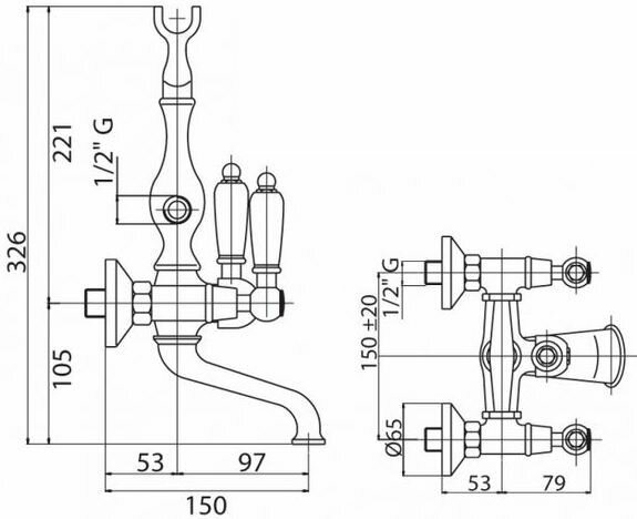 Смеситель на раковину настенный Эверест B46-350 с круглым поворотным изливом, кран-буксы 1/2", хром