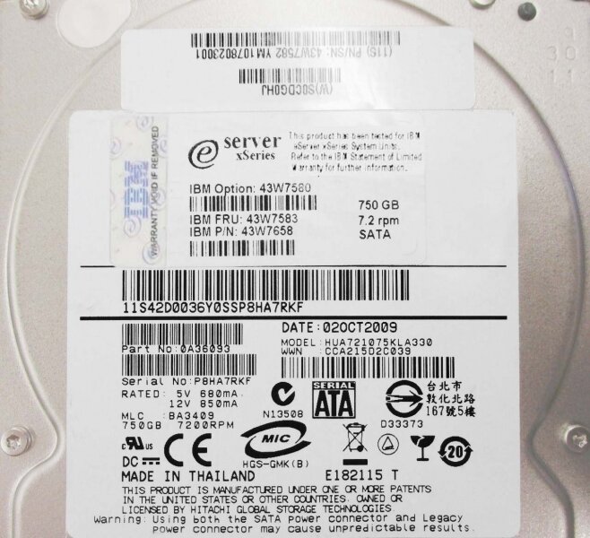 Жесткий диск IBM 750Gb SATA 7.2k 43W7580 информация: