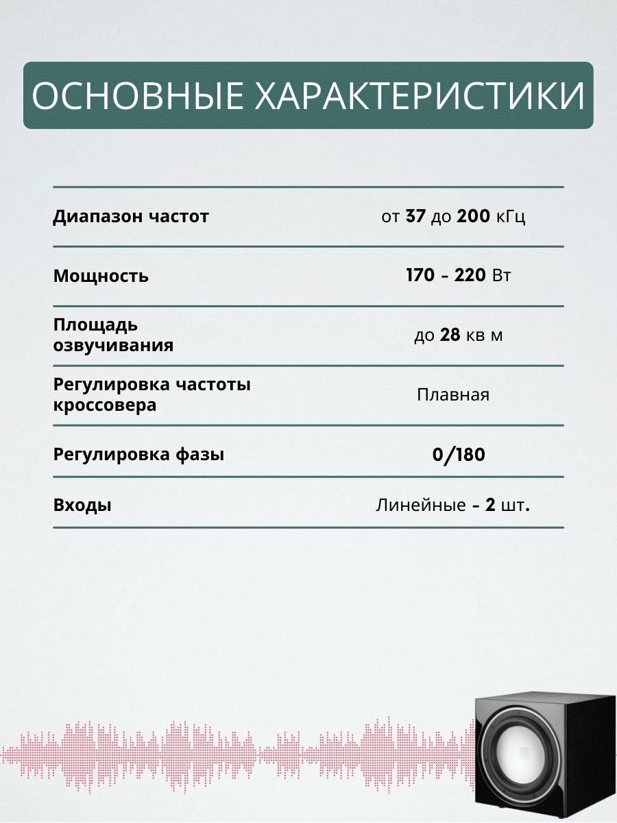 | Частота кроссовера | 40-120 Гц |