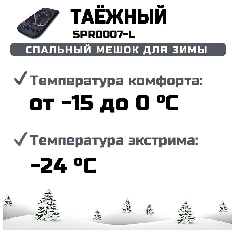 Спальный мешок одеяло Prival таежный, t extr -24 °С, 220х100, молния слева информация: