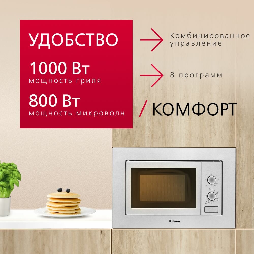 Встраиваемая микроволновая печь Hansa AMM20BMXH 800 Вт серебристый 36 814 ₽