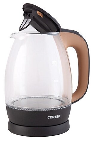 Стеклянный чайник электрический Centek CT-0056, 1,7 л, пластик бежевый/кофе