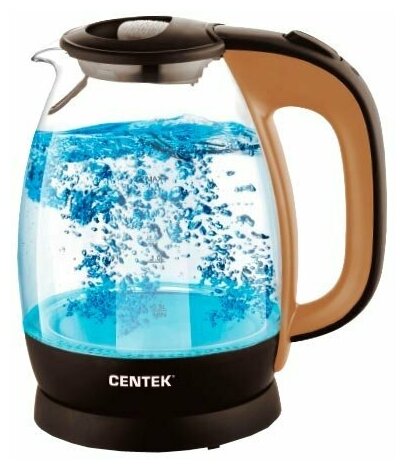 Чайник Centek CT-0056 стекло (бежевый+кофе), 1.7л, 2200Вт, LED-подсветка, боросиликатное стекло