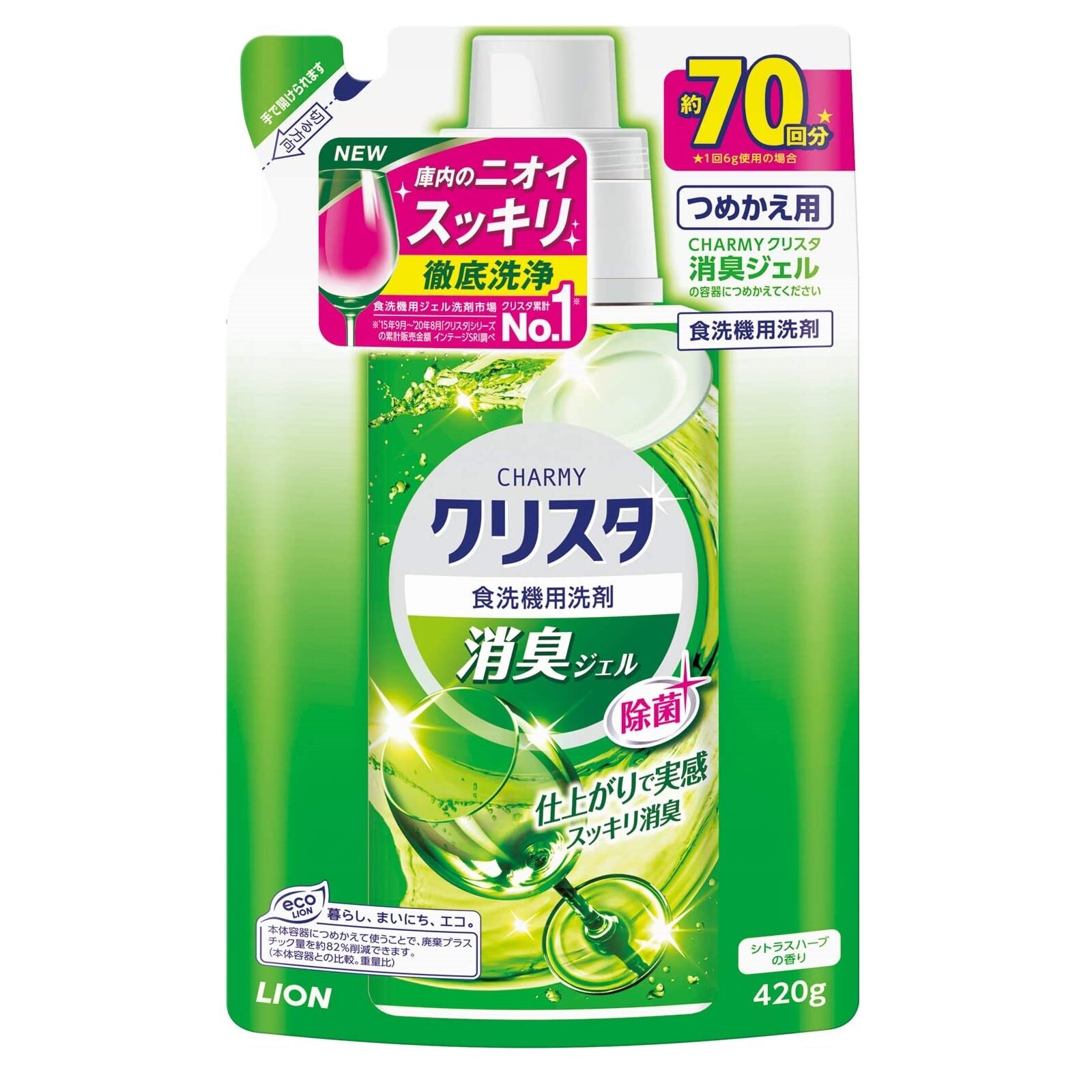 Гель для мытья в посудомоечной машине, Lion Япония, Charmy Cristal, мята-цитрус, сменный блок, 420 г