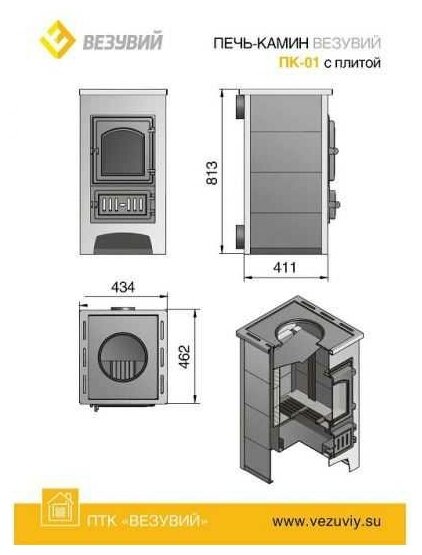 Печь-Камин везувий ПК-01 (270) с плитой, бежевый информация: