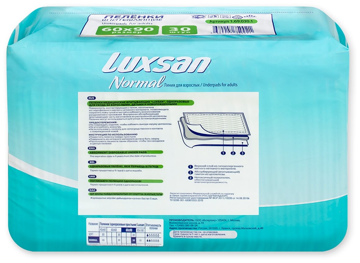 Пеленка мед, 60х90 см, уп.* 30 шт LUXSAN Basic/Normal 1.69.030.1 информация: